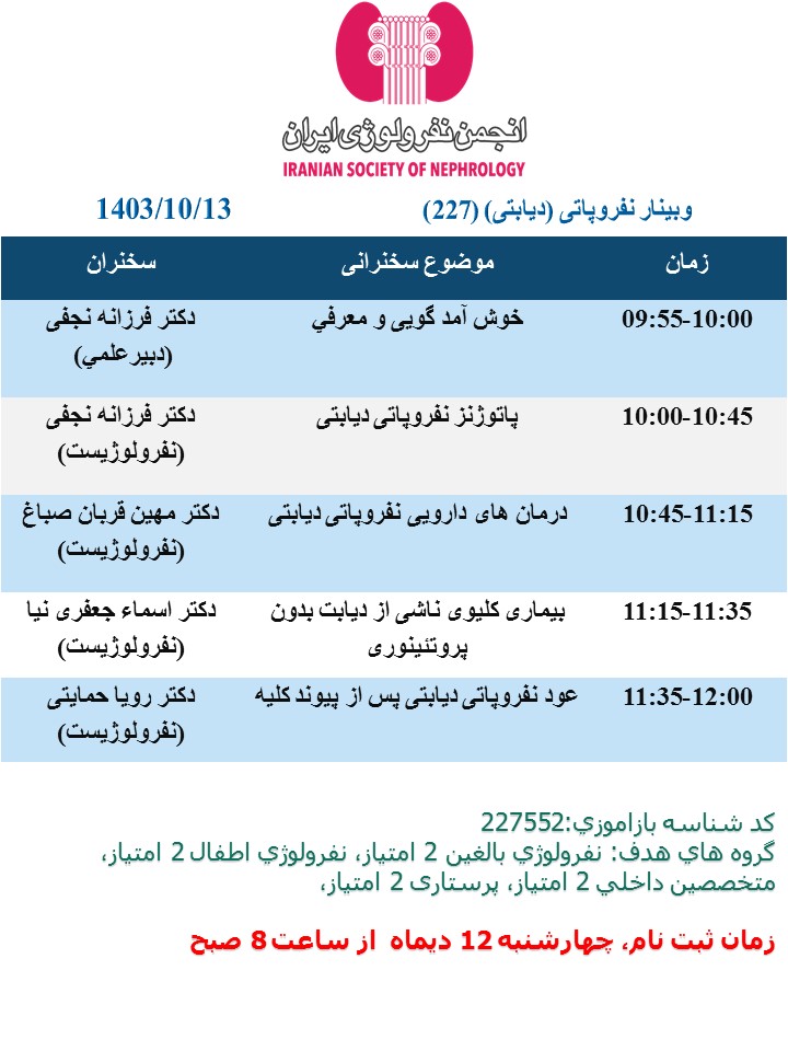 دویست و بیست و هفتمین جلسه علمی انجمن نفرولوژی ایران 13 دی