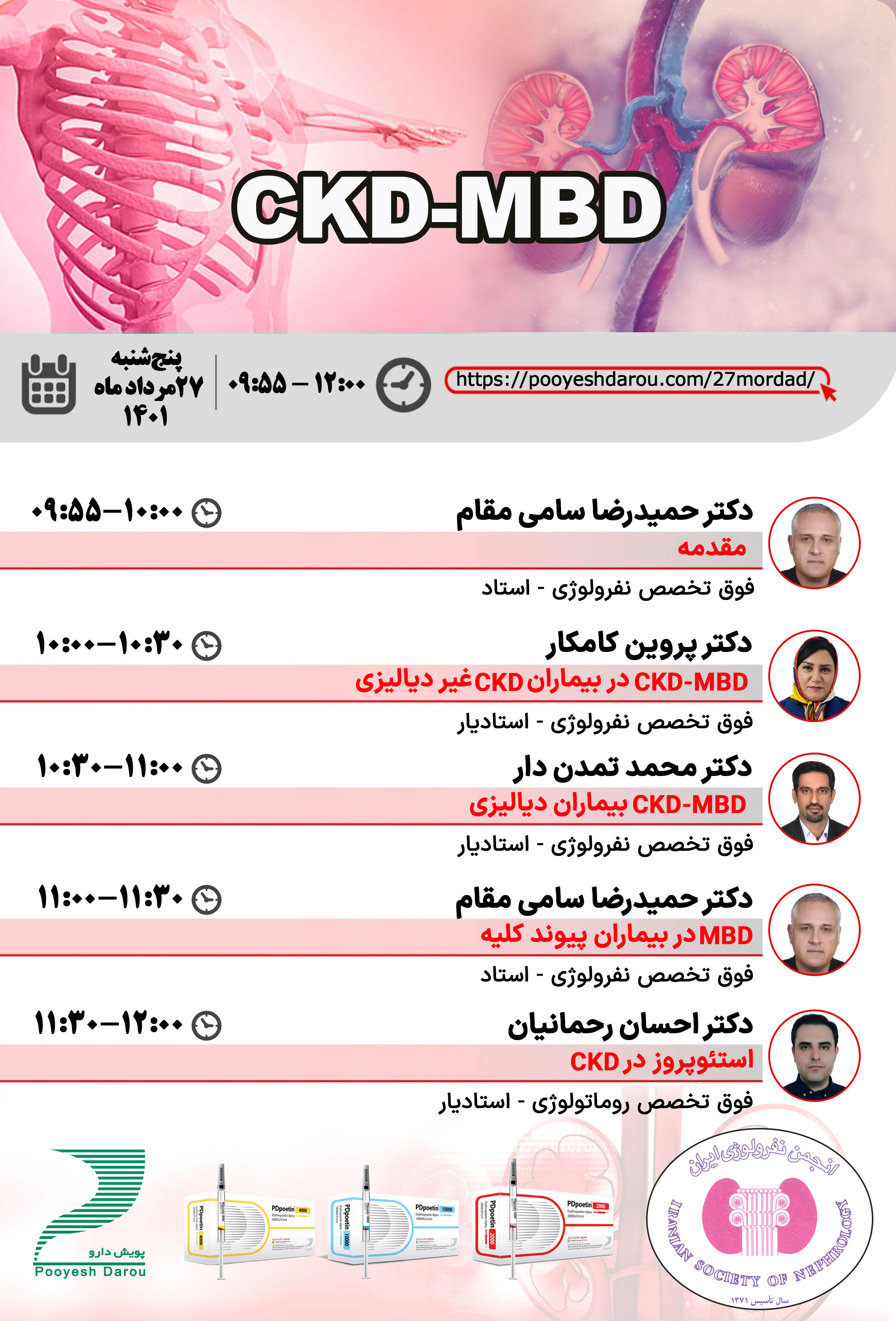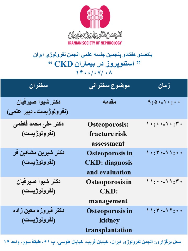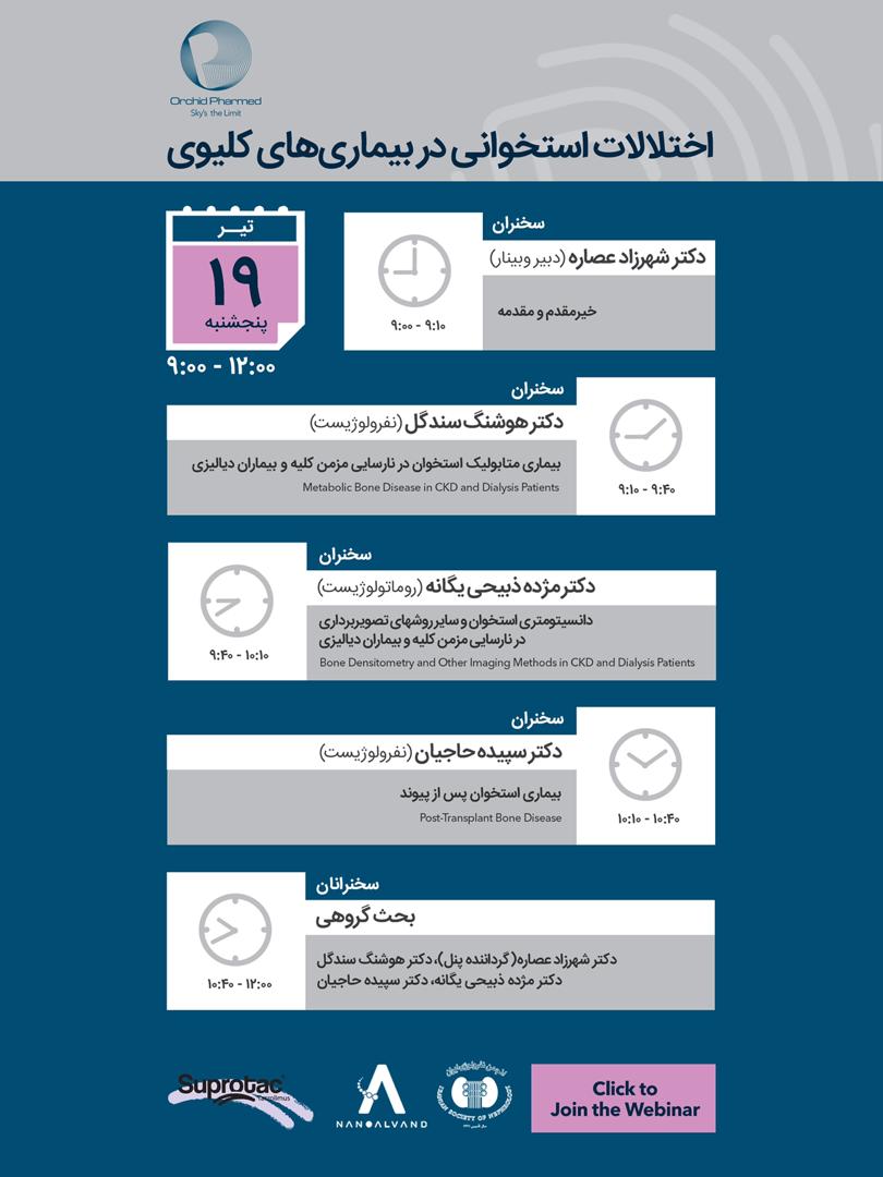 وبینار "اختلالات استخوانی در بیماریهای کلیه" پنجشنبه 19 تیرماه، 9 الی 12 (July 09, 2020)