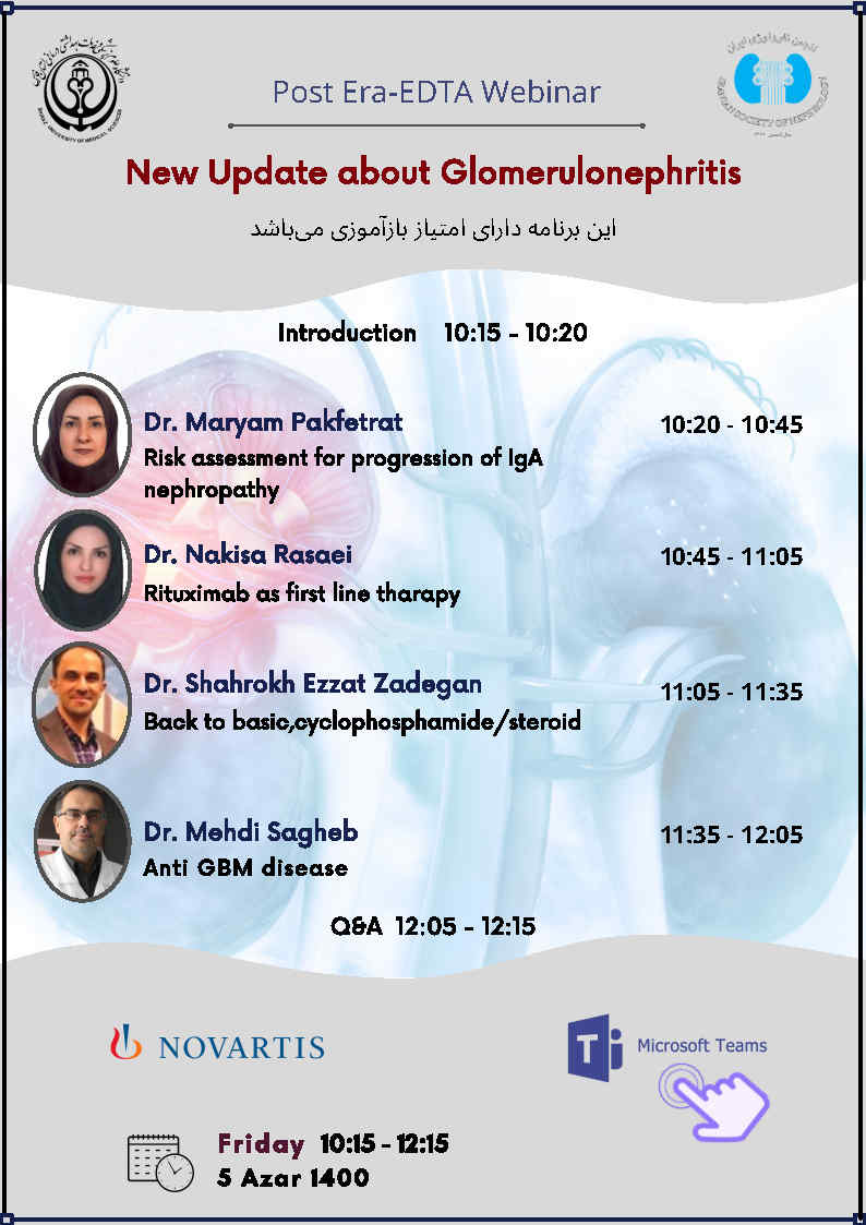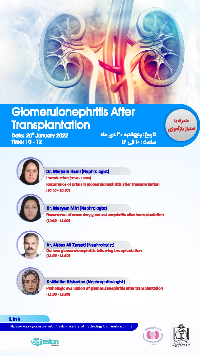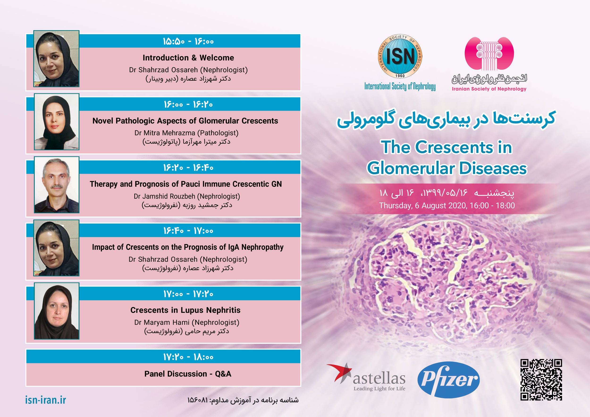وبینار "کرسنتها در بیماریهای گلومرولی" پنجشنبه 16 مردادماه، 16 الی 18 (َAugust 06, 2020)
