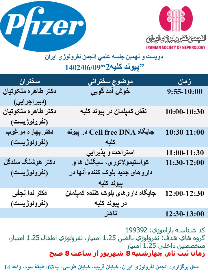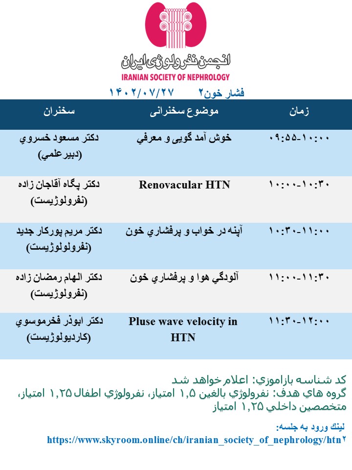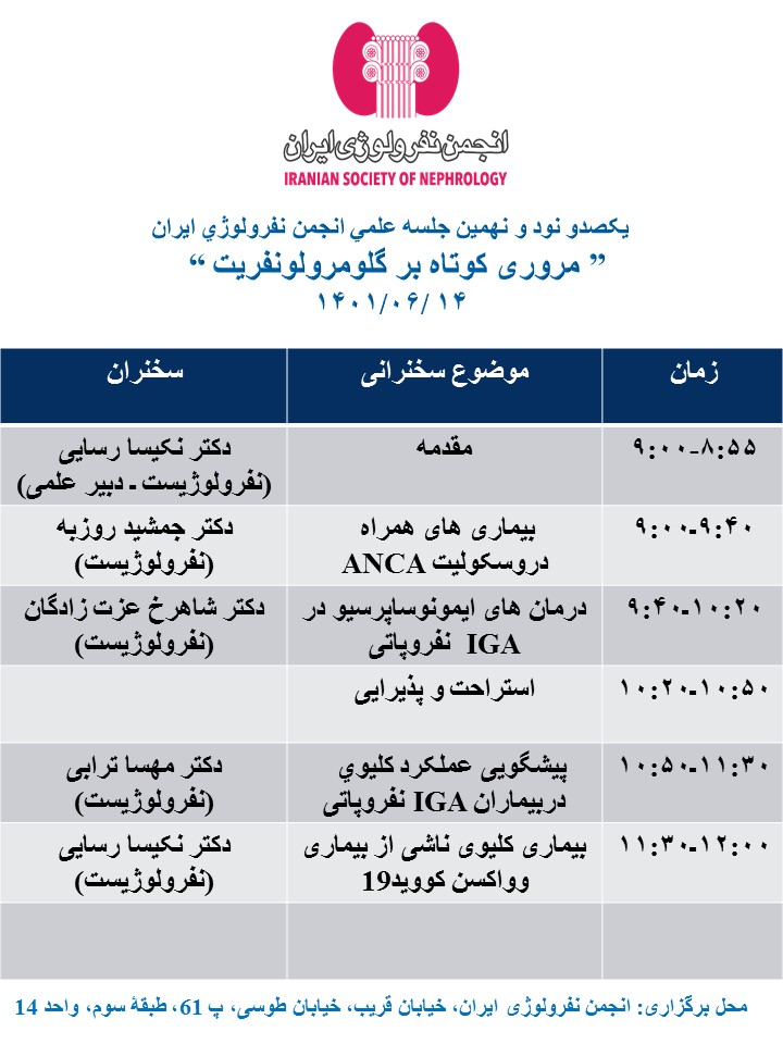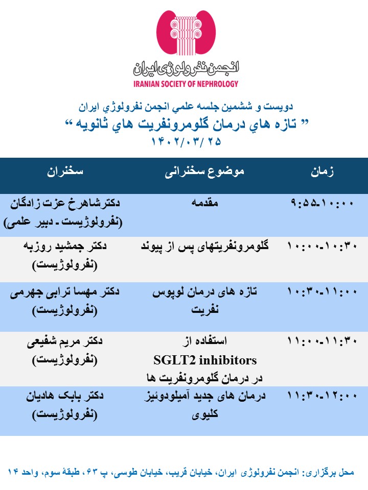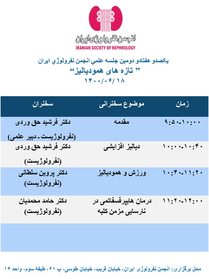 دویست و دهمین جلسه علمی انجمن نفرولوژی ایران 30 شهریور (مجازی)
