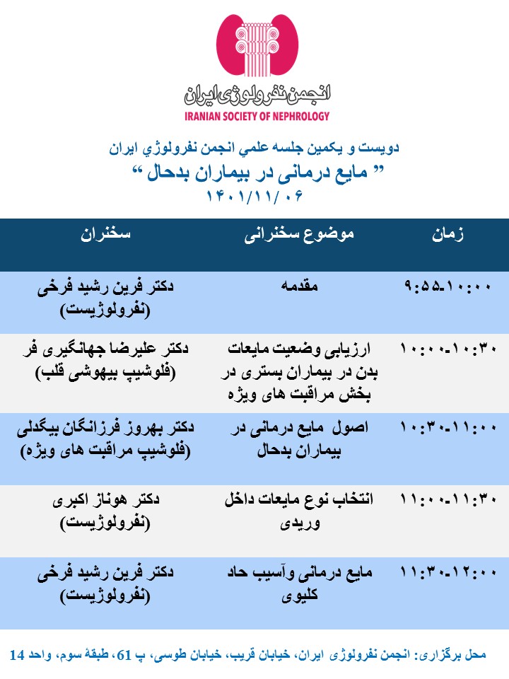 دویست و سی و یکمین جلسه علمی انجمن نفرولوژی ایران 16 اسفند