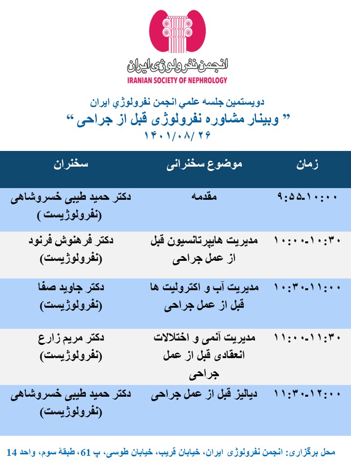 وبینار مشاوره نفرولوژی قبل از جراحی 26 آبان