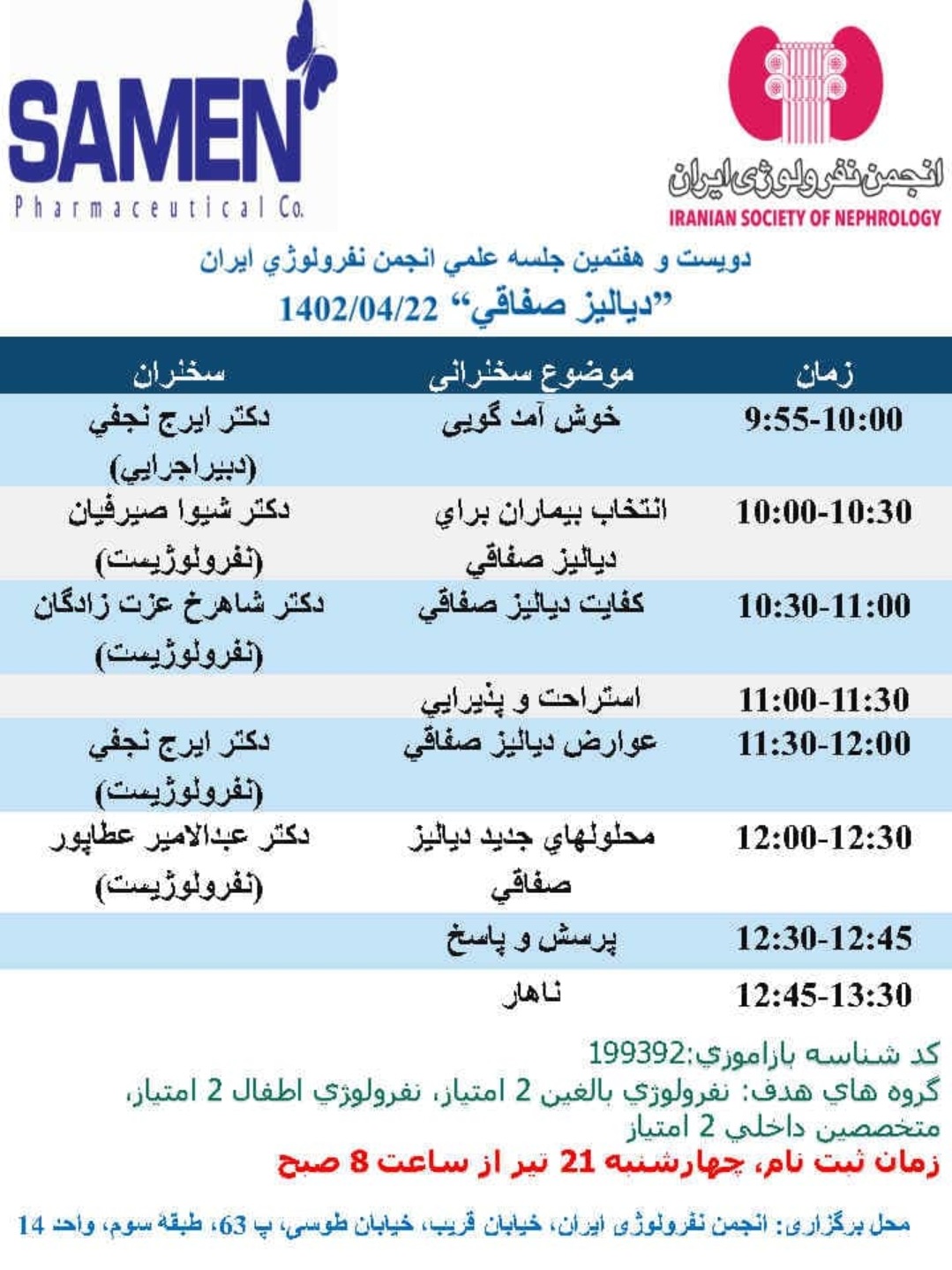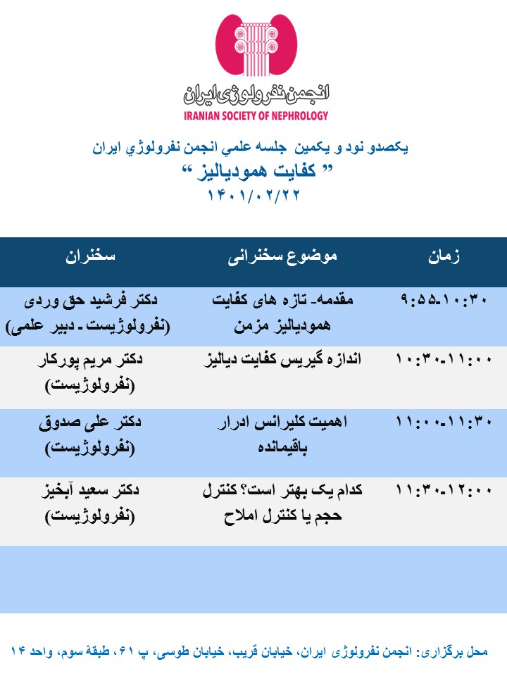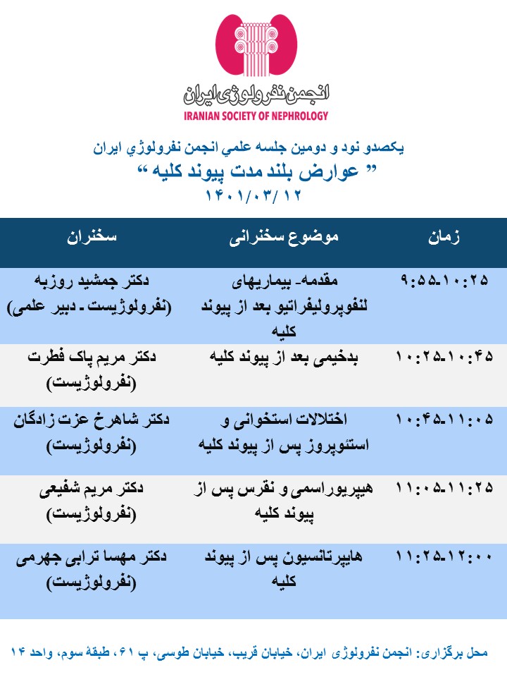 دویست و بیست و دومین جلسه علمی انجمن نفرولوژی ایران 14 تیر