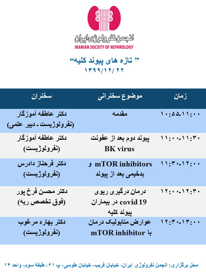 11 ارديبهشت 99، وبينار "COVID-19 و بيماريهاي كليه"