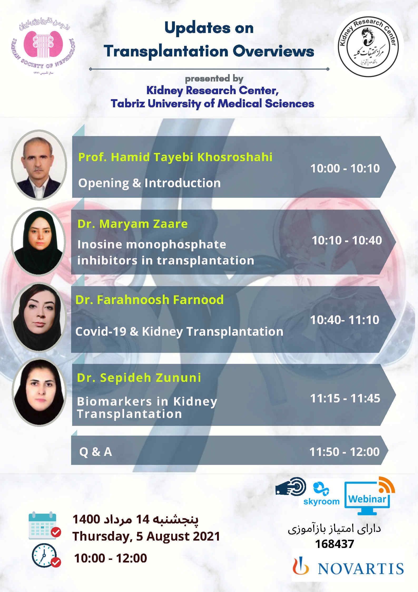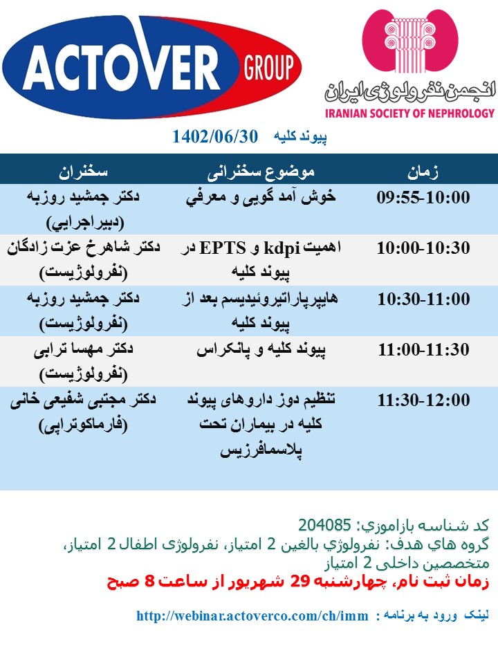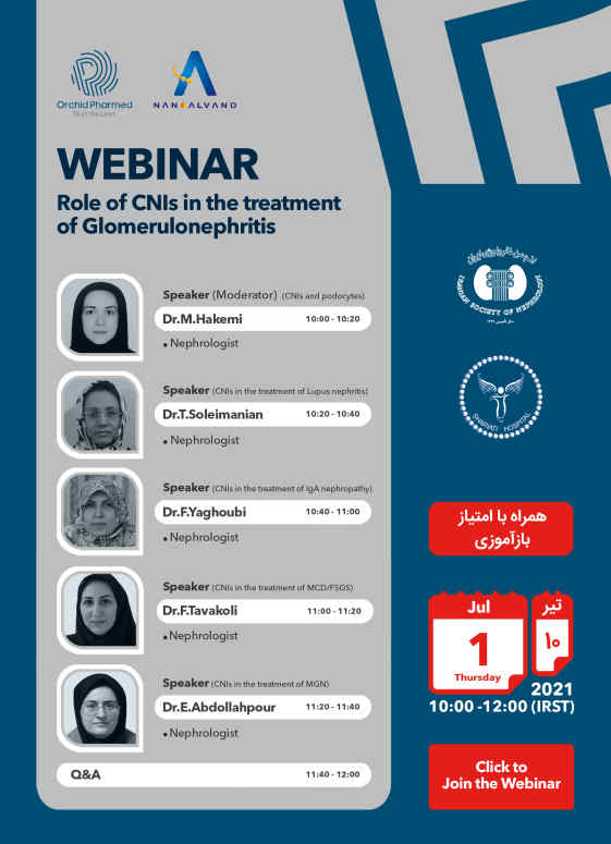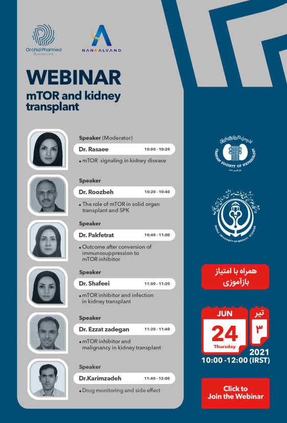 وبینار "CNI Inhibitors in Kidney Transplant" پنجشنبه 24 مهرماه، ساعت 08 الی 10 برگزار شد.